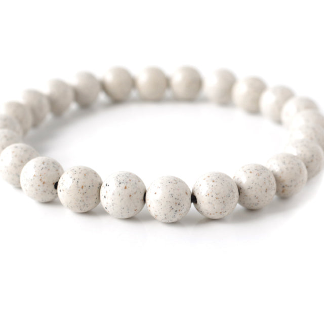 《日本産との違い》日本産の北投石は白色のものが多いのに対し、台湾産の北投石は、ややグレーや淡いクリーム色を帯びた柔らかな色合いが特徴です。落ち着いた輝きが手元に自然な調和をもたらし、穏やかな印象を与えます。